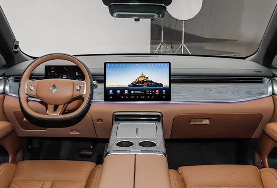 中控台采用环抱式设计,平直的线条搭配全液晶仪表、悬浮式中控屏以及双拼配色多功能方向盘,整体视觉效果颇具品质感。新车提供后排双侧小桌板以及吸顶屏,对于后排乘客的照顾十分到位。