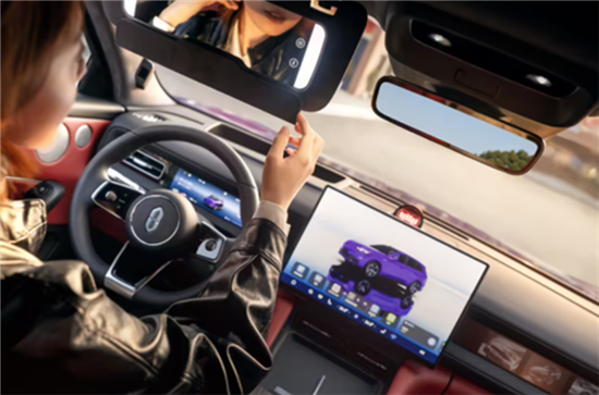 副驾区域的“灵感橱窗”是此次内饰的创新设计。橱窗采用磁吸底板与强度达90MPa的防爆钢化玻璃面板,碰撞后仍可保持完整,不影响气囊弹出。用户可搭配官方磁吸公仔、模型等陈列装饰,也可更换墨彩相册、律动香氛等配件,打造专属的“百变副驾” 空间,其中墨彩相册支持NFC碰一碰上传照片,律动香氛则有2种香型可选,并可联动车内氛围灯。