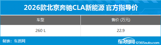 北京奔驰纯电CLA 260 L上市 售价22.9万元