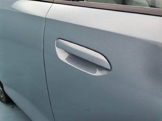 该车也是使用了半隐藏式门把手,机械的结构不仅确保了安全,同时使用起来的便捷程度也是更高,还能带来更好的风阻表现。作为一台更加时尚而当车型,该车也是在侧窗位置使用了黑色涂装,并没有使用传统的镀铬装饰。